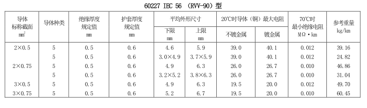 導(dǎo)體溫度90℃的耐熱輕型聚氯乙烯護(hù)套軟線